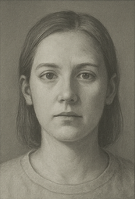 自画像で、最も難しい要素の一つが「表情の描写」です。ほんの少しの線の傾きや影の強さで、顔の印象はまったく変わります。