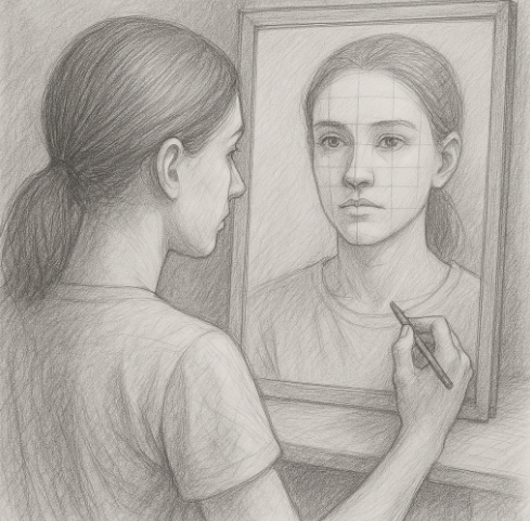 自画像を鉛筆で描くことは、単なる顔の模写ではなく「自分自身の観察記録」です。描きながら、自分の癖、感情、そして視点の偏りを発見できます。