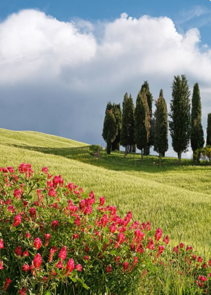 たとえば、畑の畝(うね)、並木、川の蛇行などは、トーンの階段を一段ずつ上げ下げする感覚で配置しましょう。