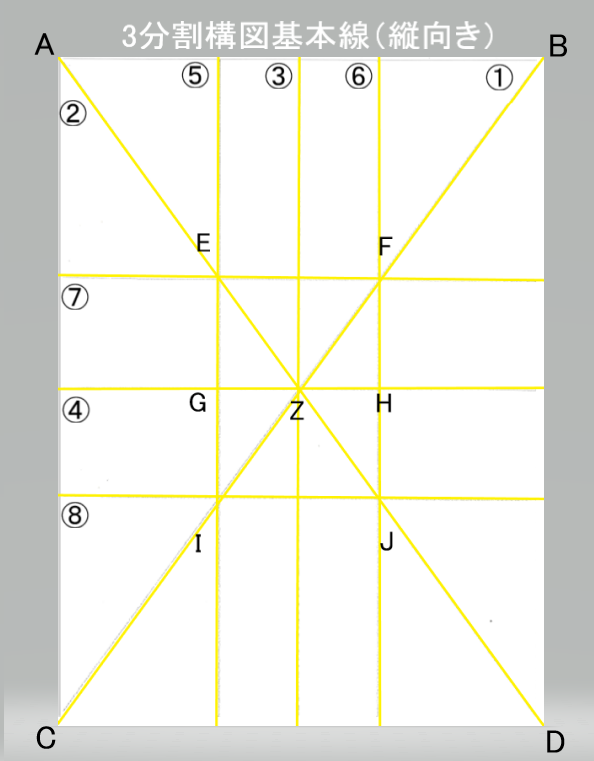 この場合には、先ほどの画像を再度掲載しますが、2つの対角線(①、②)を上手に使うことも重要です。