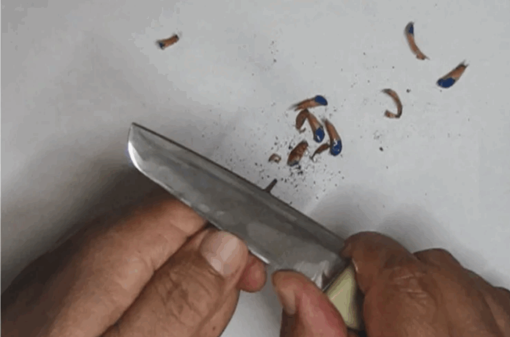 ただし、ナイフに慣れていない場合は、木部を削りすぎたりすることもあるため、薄く削っていく意識が必要です。