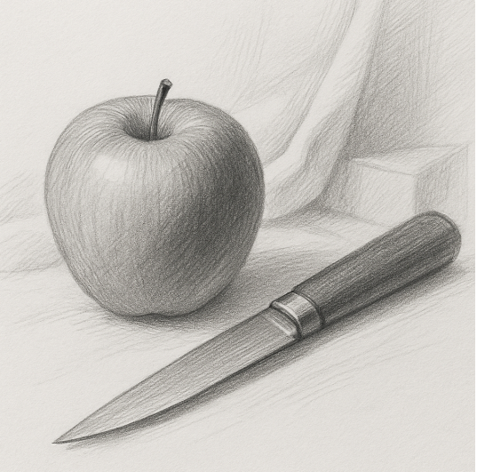 シャープな線は、鉛筆画やデッサン初心者の人が、最初に理解すべき基礎の中でも特に重要な技法です。輪郭を明確に示し、硬さや鋭さを表現するために欠かせない線であり、作品全体の印象を大きく左右します。