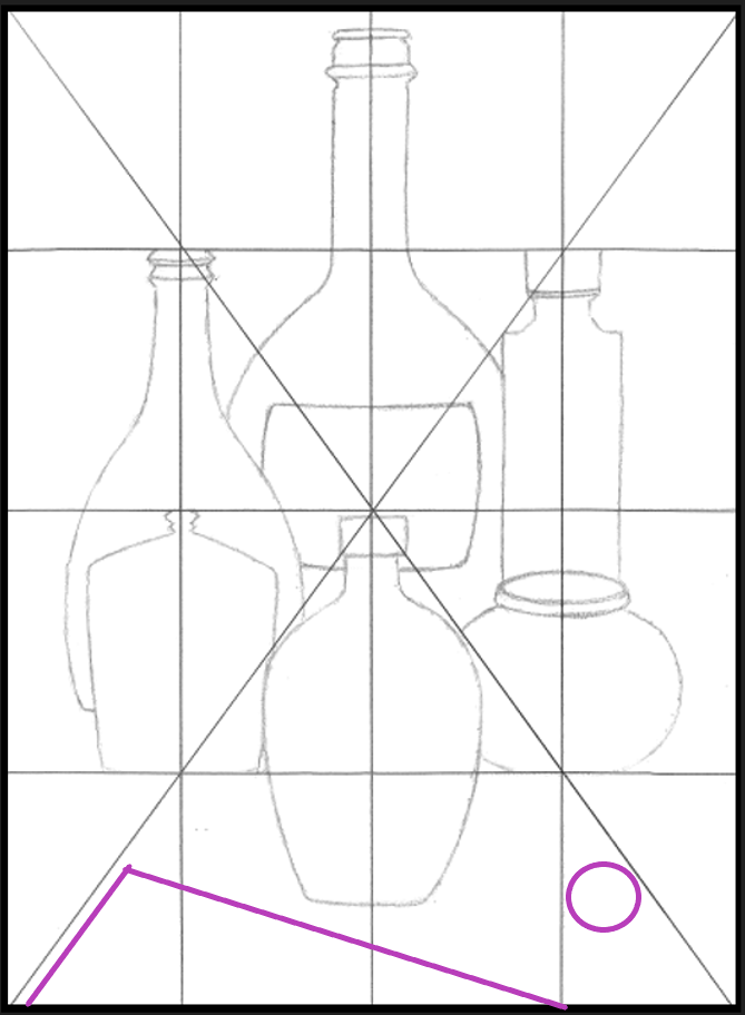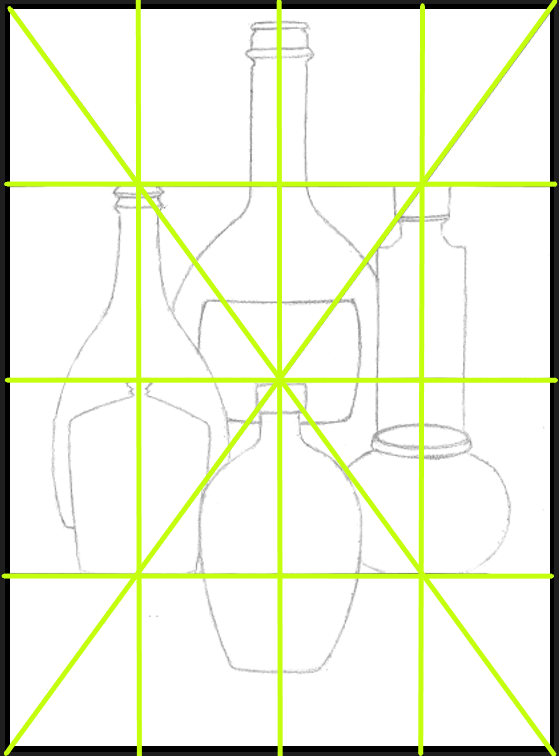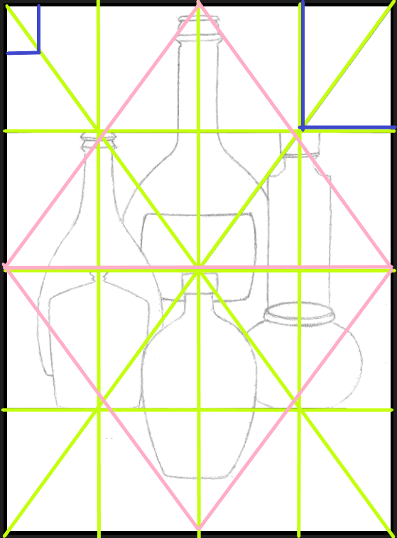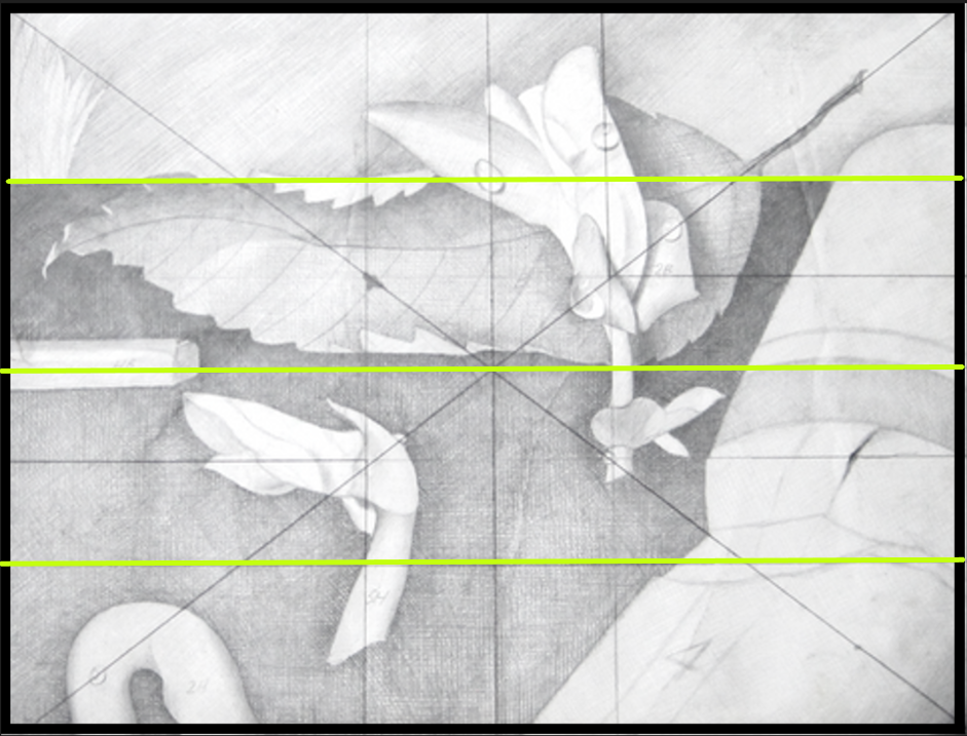鉛筆画やデッサン中級者の人が、画面のリズムを整え、複数のモチーフの関係を整理するうえで、非常に有効な指標として機能します。
