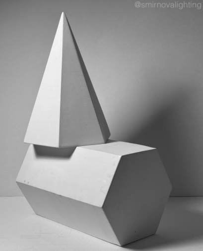 鉛筆画やデッサン中級者の人が、奥行きを苦手とする理由は、上下のモチーフの配置に方向性が欠けてしまうためですが、逆3角形を使うことで、どこに視線を向けるべきかが明確になるのです。