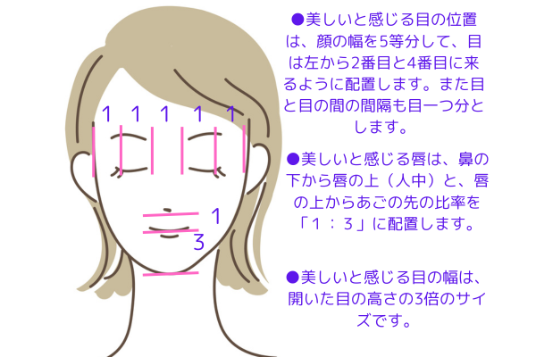 大切なのは、目だけを単独で観るのではなく、額・鼻・口との位置関係の中で捉えることです。たとえば、「目から顎までの距離」「眉との間隔」「左右の高さ」をまとめて確認することで、顔全体が安定するのです。
