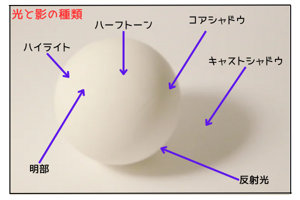反射光を明るくしすぎると、影の領域が曖昧になり、結果として全体がぼやけた印象になります。反射光はあくまでも、「影の中のわずかな変化」であり、主役の光ではありません。次の画像を参照してください。