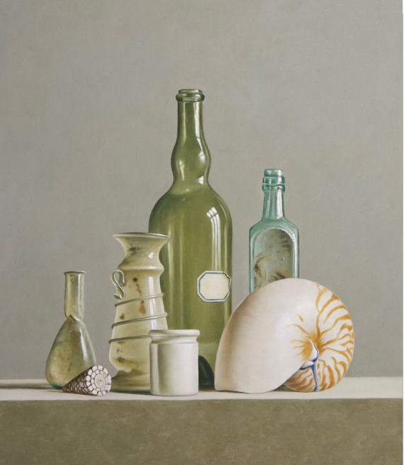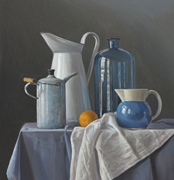 たとえば、ガラスと陶器、金属と布が並んだ静物で、それぞれの硬さや光の反応の違いが一目で分かる状態であれば、質感としては完成しているのです。