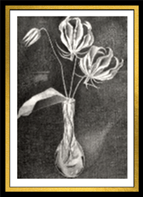 また、花を描く場合、仮に、一輪挿しや花瓶に活けてある情景を描く際には、「黒い下敷き(A4くらいの大きさが良い)」を購入して、下に敷いてみましょう。その反射している影までも描くと、独特の作風になります。