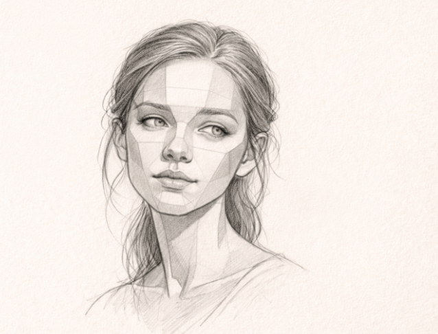 顔の比率が崩れる理由は、顔を線ではなく面として捉えられていない点にあります。基準となる大きな面を最初に定め、面の傾きや左右差を含めて観察し続けることで、比率は安定します。