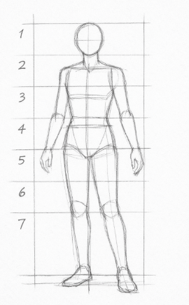 - 頭を基準にして、おおよその頭身(例:6〜8頭身)を区切る。