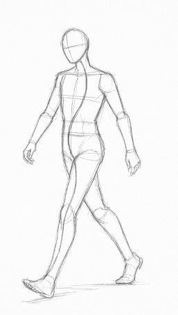 - 次に、どちらの足に体重がかかっているかを意識して描く。