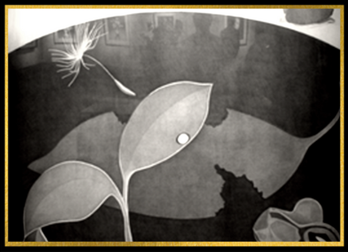 因みに、この作品の主題である植物の芽の配置には、黄金分割という構図の位置に据えています。具体的には、画面の横の寸法に対して÷1.618で得られた寸法で分割しています。次の画像を参照してください。
