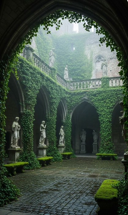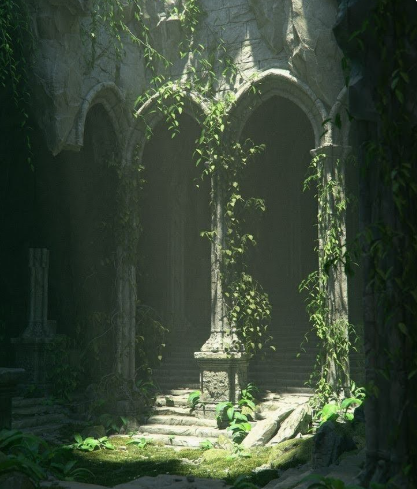 また、遠近法を劇的に高める手法もお伝えしておきます。それは、近景を「薄暗く」、中景を「暗く」、遠景を「明るく」描くことで、劇的な「画面深度」を構成できます。次の作品を参照してください。^^