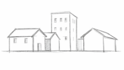・建物や風景をモチーフに、輪郭と大きな面だけでデッサンする。