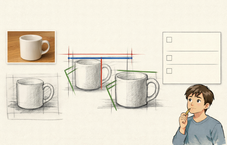 見方を変えることは、デッサンの精度を根本から改善する最も重要なステップです。