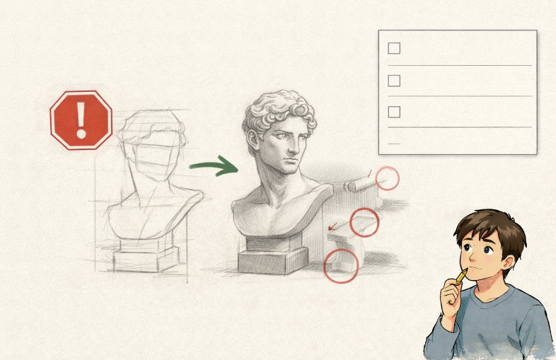 デッサンの精度は、特別な才能ではなく「適切な順序と意識」によって確実に高めることができます。