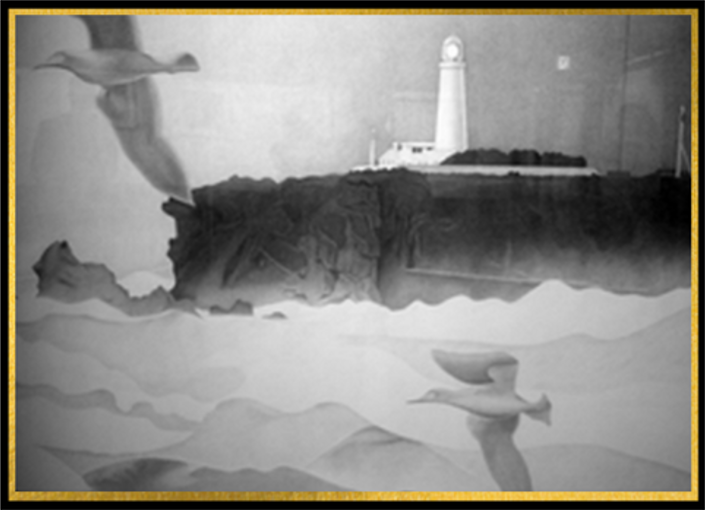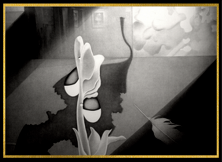 第2回個展出品作品 灯(あかり)の点(とも)る窓辺の静物 2000 F100 鉛筆画 中山眞治