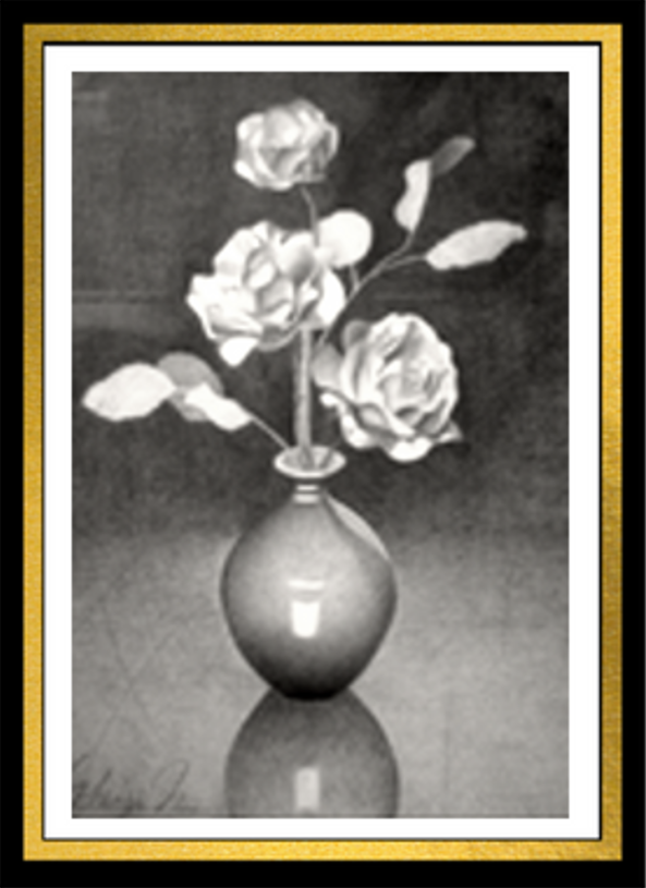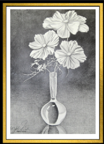 第2回個展出品作品 一輪挿しと花 1997 F10 鉛筆画 中山眞治