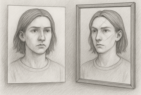 鉛筆画中級者の人も、制作の節目で鏡を使うことで、視覚の慣れを断ち切り、プロポーション(比率)の精度を高められます。