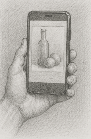 これは特に、人物や複雑な構造のモチーフを描く際に効果的で、鉛筆画中級者の人が無意識に抱く、「こうあるべき」という思い込みを取り払う助けになります。