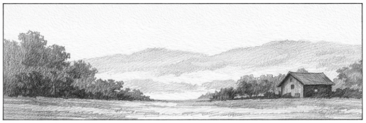 実際の風景の多くは、極端な明暗ではなく、中間的なトーンによって構成されています。この練習では、明るい部分と暗い部分の間に、複数の中間トーンを意識的に作り分けるのです。次の作品を参照してください。