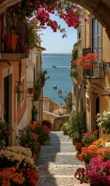 道や川、建物の並びなどを利用し、視線が自然に奥へ導かれる配置を考える練習を行いましょう。次の作品を参照してください。