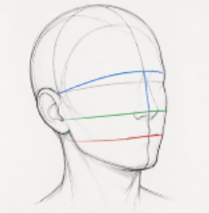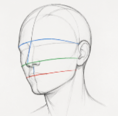 顔には、必ず「向き」があります。正面であってもわずかな傾きやねじれが存在しており、それを無視すると不自然な仕上がりになります。この向きを正確に捉えるために重要なのが中心線です。