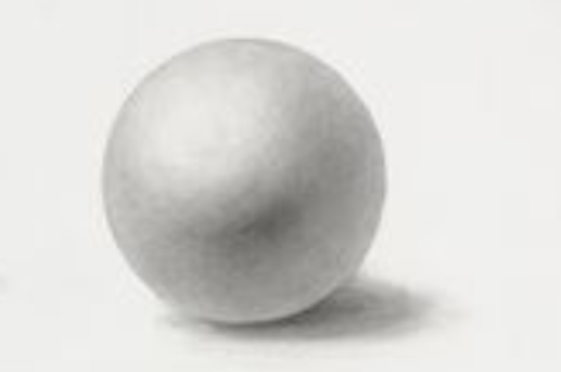 とくに球体では、ハイライト・中間トーン・コアシャドウ・反射光(リアルな描写に欠かせない)といった明暗の段階を丁寧に観察します。