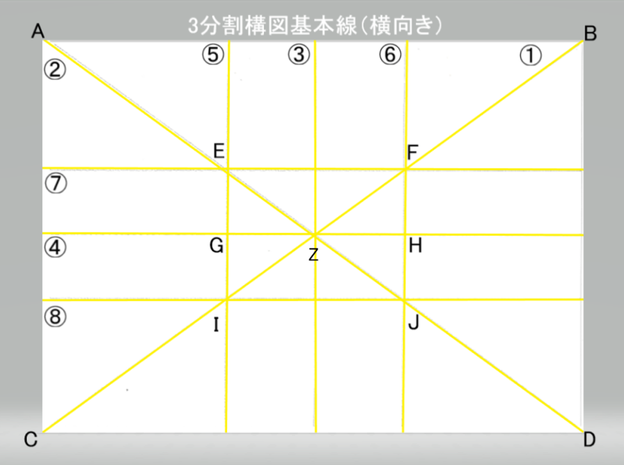 画面を縦横それぞれ3等分し、その交点やライン上にモチーフを配置することで、安定感と自然な視線誘導を生み出すことができます。