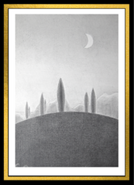 入り江の夜明け 2024 F3 鉛筆画 中山眞治