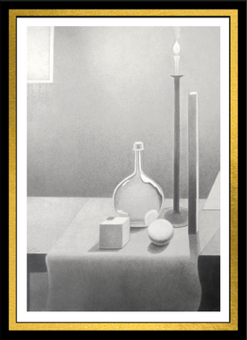 第3回個展出品作品 灯(あかり)の点(とも)る窓辺の静物 2022 F10 鉛筆画 中山眞治