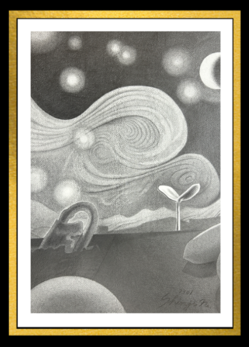 星月夜の誕生 2023 F10 鉛筆画 中山眞治
