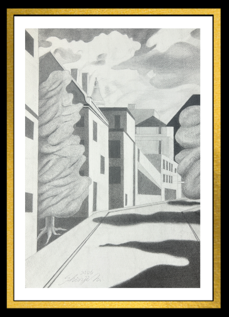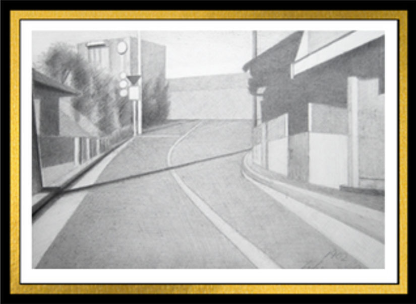 坂のある風景Ⅱ 2019 F1 鉛筆画 中山眞治
