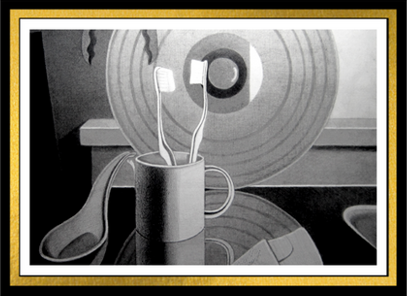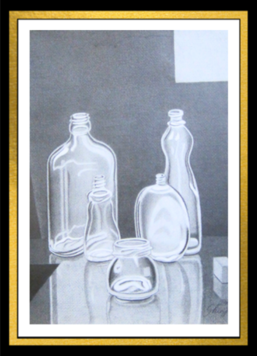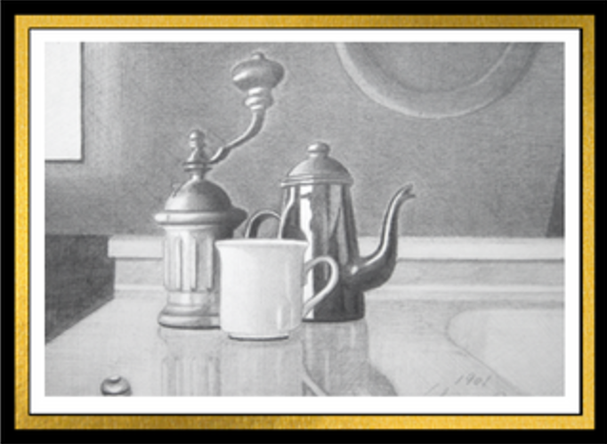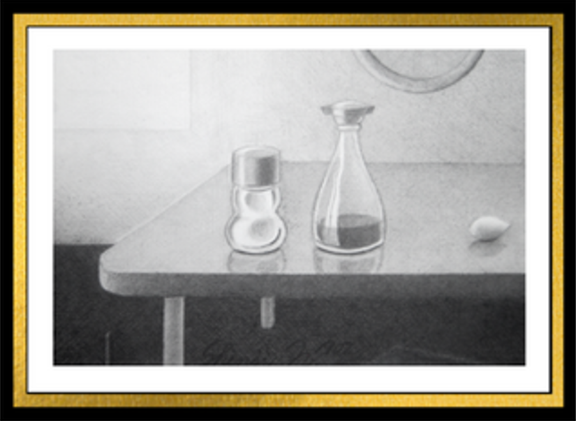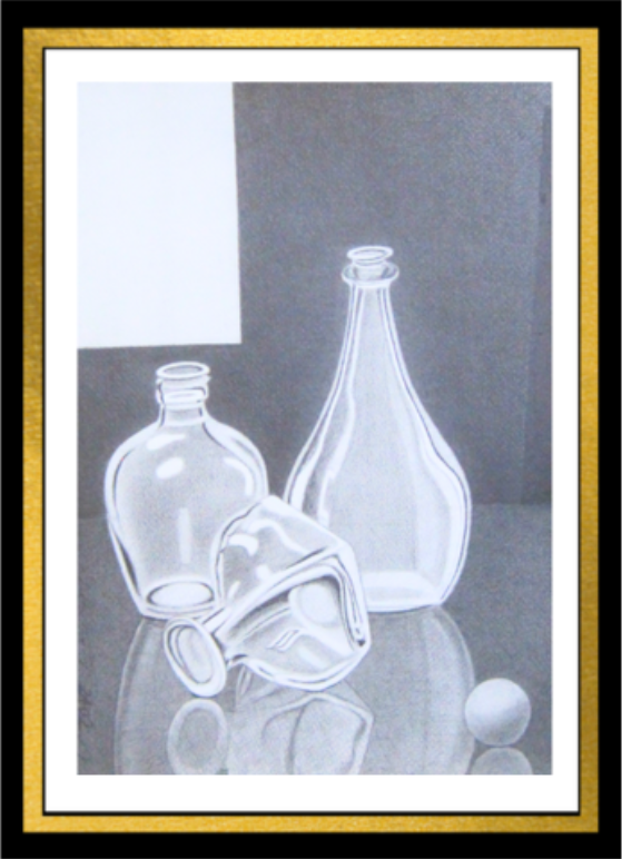 単純な静物(コップ・箱・球体など)をモチーフに設定し、陰影を一切つけずに輪郭と比率のみで完成させる。描き込みは禁止して、形の適切性だけに集中する。