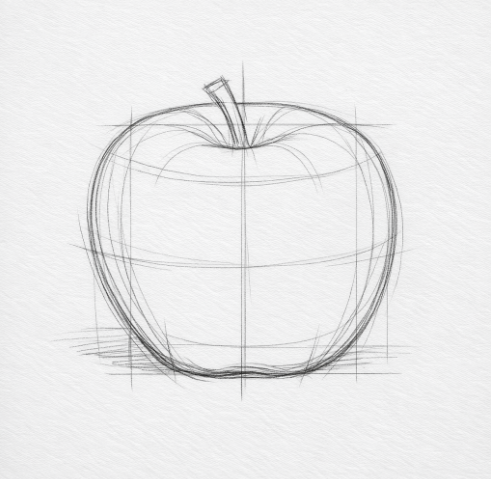 中間段階では、すべての輪郭線を同じ強さで描く必要はありません。鉛筆デッサンでは、線は形を説明するためではなく、構造を示すためにも使います。
