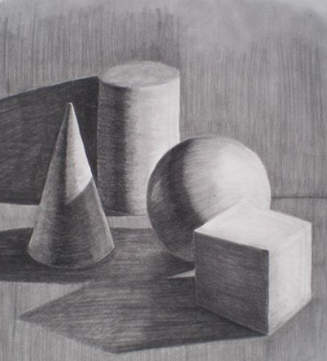 光側・中間・影側という大きな区分を意識することで、明暗構造が整理され、立体のモチーフが安定して見えるようになります。この整理が不充分なまま描き進めると、画面全体が散漫になります。