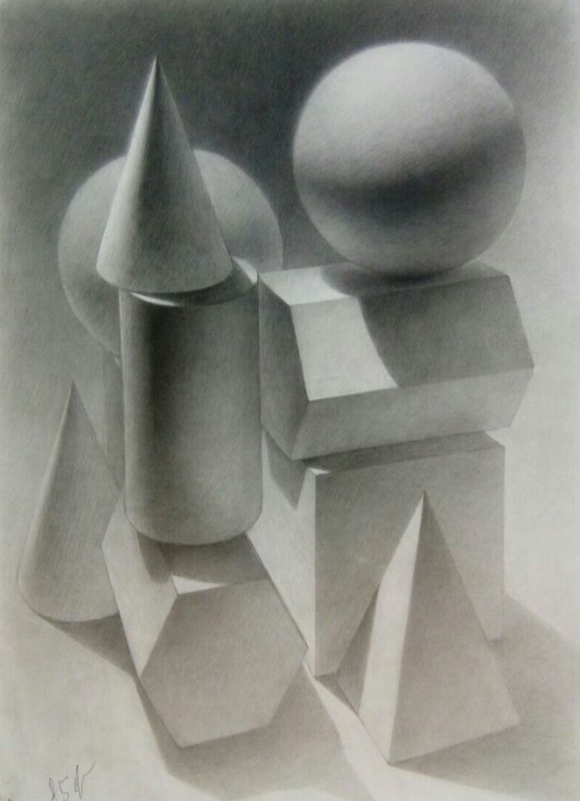 立体を単純化して捉えることで、面の向きや奥行きが整理され、鉛筆画へ進んだ際にも説得力のある形を描けるようになれます。