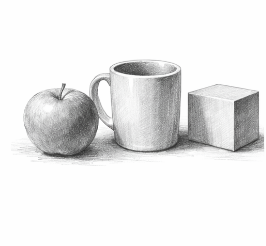 コップ・箱・リンゴなど、形の分かりやすい静物を2〜3個並べて置きます。