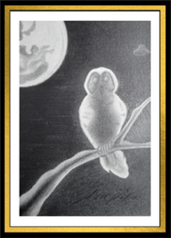フクロウのいる風景 2021 F1 鉛筆画 中山眞治